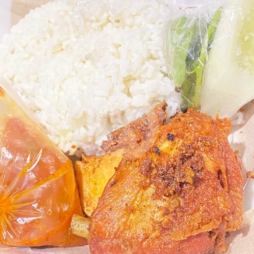Tanpa kotak kemasan foam(nasi+ayam gr+2tempe/tahu+ lalapan+sambal bawang)