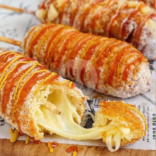 Mozarella Yang Dibalut Adonan Tepung Dan Dilapisi Tepung Panir Lalu Di Goreng Dan Diberi Toping Glaze Atau Saus Dan Mayonais