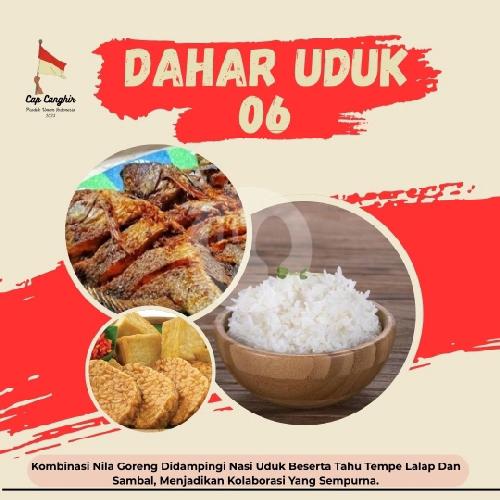Kombinasi ikan nila goreng didampingi nasi uduk beserta tahu tempe lalap dan sambal menjadikan kolaborasi yang sempurna.