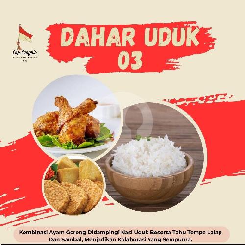 Kombinasi ayam goreng didampingi nasi uduk beserta tahu tempe lalap dan sambal menjadikan kolaborasi yang sempurna.