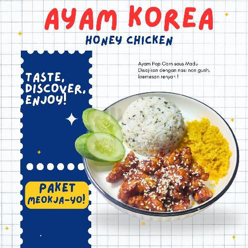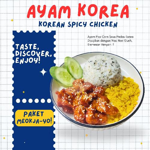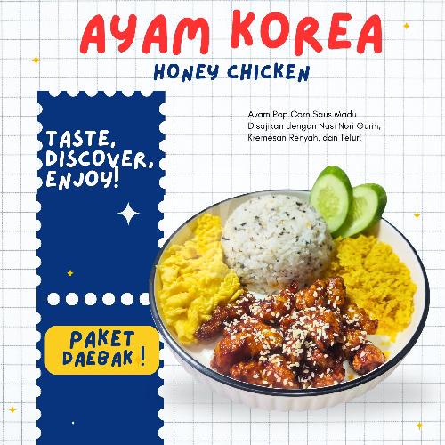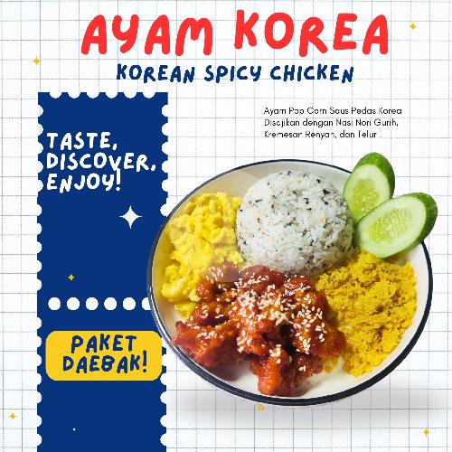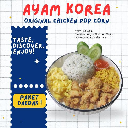 Ayam Popcorn Dengan Saus Korea Pedas + Nasi Nori + Kremesan Renyah + Scramble Egg + Timun