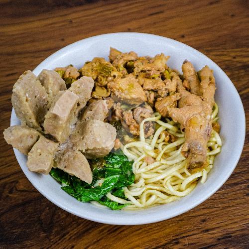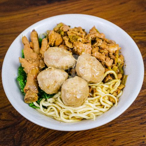 Mie Ayam + Bakso Urat Besar + Sayuran + Ceker (Jika Tersedia)