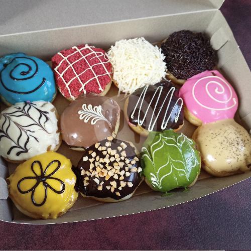 Donat empuk, lumer, lezaat dengan berbagai varian rasa yang bebas dipilih sesuka hati Looh. Pilih maksimal 12 rasa ya Kakaa