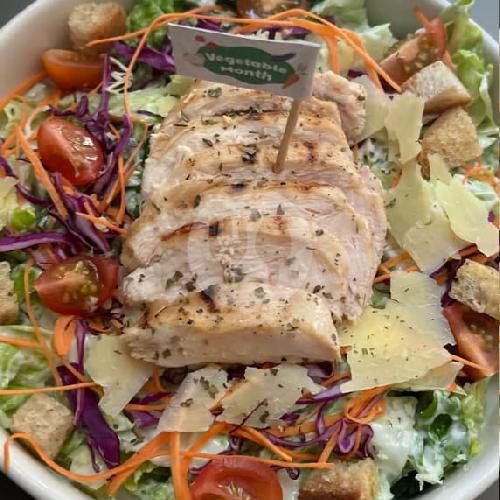 Green Salad With Grilled Chicken, Croutons, Caesar Dressing And Parmesan