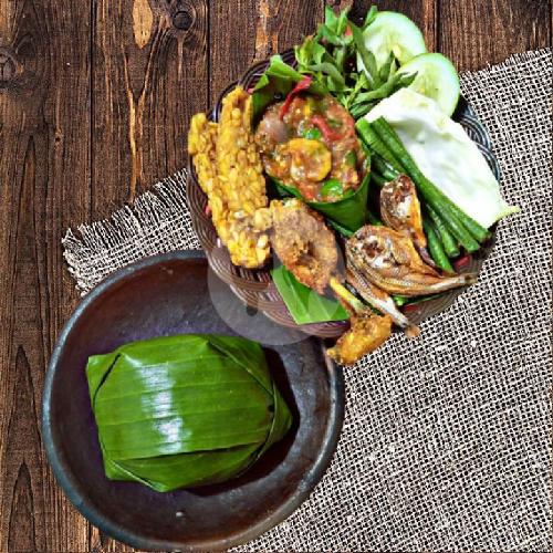 Nasi Alas Daun + Ayam Goreng + Tempe + Ikan Asin + Sambel + Lalapan + Es Teh