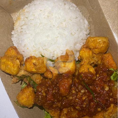 Nasi, ayam geprek utuh, tahu cabe garam (pot ayam sesuai stock)