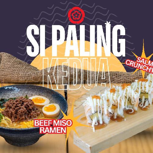 Beef miso ramen (r) + salmon cheezy roll