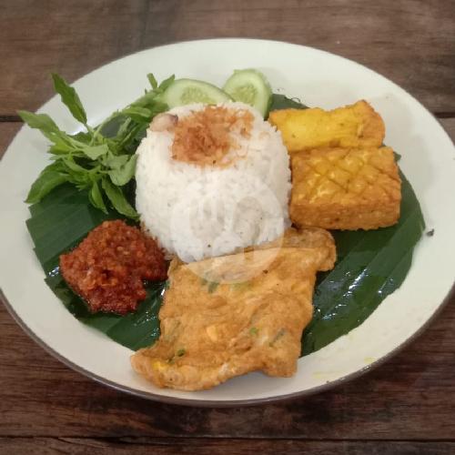 Nasi Sambal Dengan Lauk Telur Dadar Extra Tahu Tempe Dipadu Dengan Lalapan