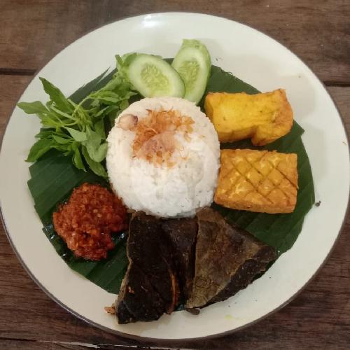 Nasi Sambal Dengan Lauk Empal Extra Tahu Tempe Dipadu Dengan Lalapan