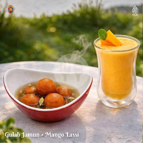 Perpaduan rasa manis dan segar khas India dalam satu paket. Gulab Jamun yang lembut dan manis berpadu dengan Mango Lassi yang creamy dan segar. Cocok untuk pencinta dessert dan minuman yang berani rasa!
