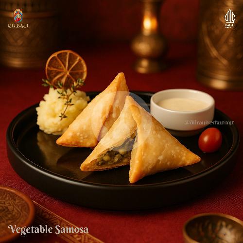 fried pastries filled mix vegetable curried, potatoes boiled, green peas, garlic onion served with chili sauce mayo