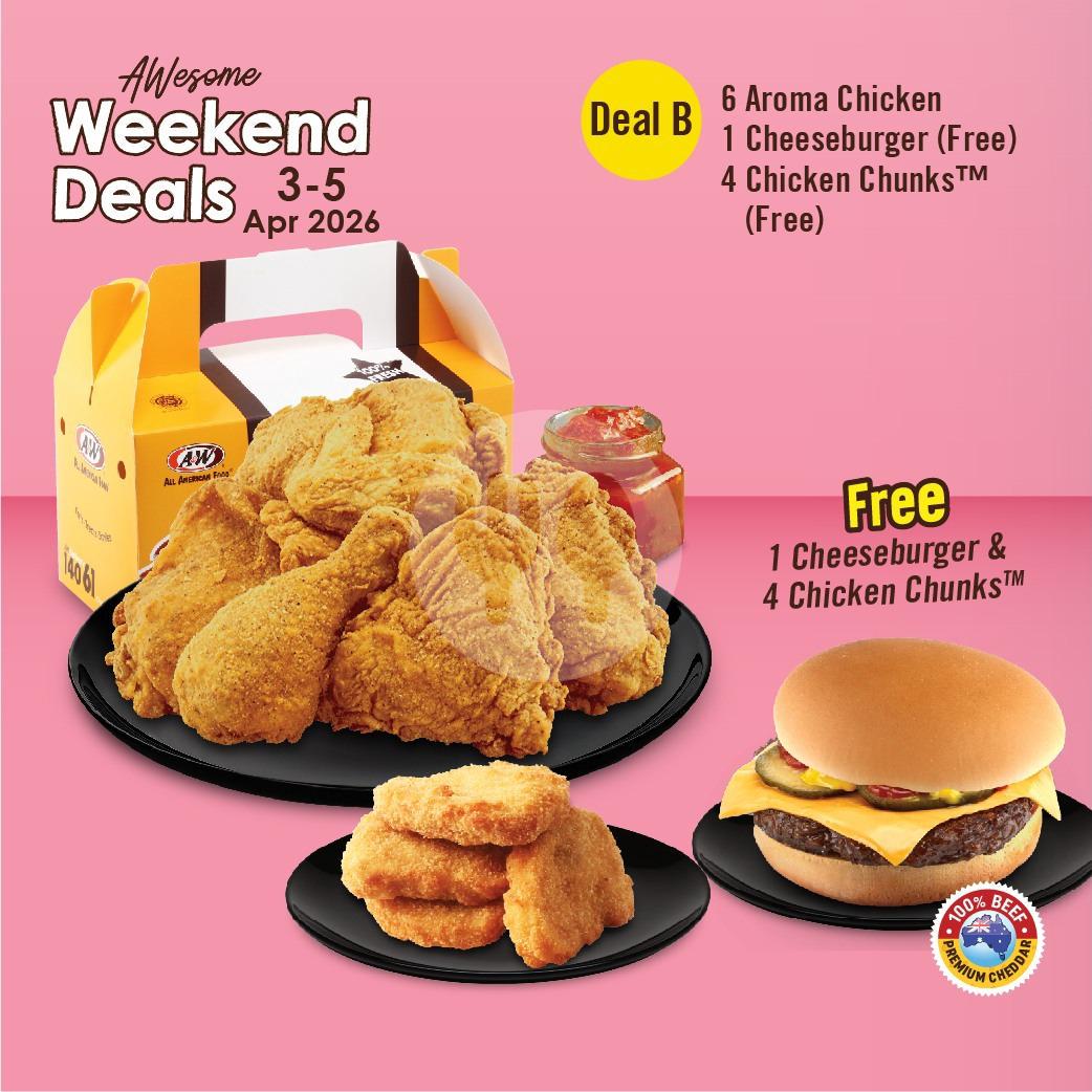 6 Golden/Spicy Aroma Chicken + FREE! 1 Cheese Burger & 4pcs Chicken Chunks.
