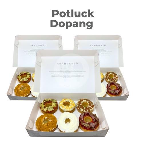 12 glazed dopang biar ngumpul makin gampang, note:glazed dopang: glazed dopang, sweet dopang: peanut butter, and jam, milky dopang, cheesy dopang half & half: mix sweet & savory dopang, savory dopang: beef berry dopang, chicken and cheese dopang
