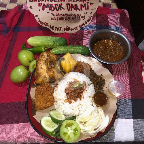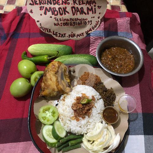 NASI PUTIH + AYAM GORENG PENYET REMPAH + SERUNDENG KELAPA + LALAPAN + KERUPUK + SAMBAL IJO BUMBU REMPAH SUPER LEZAT MBOK DARMI