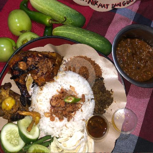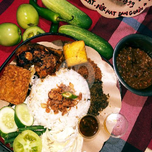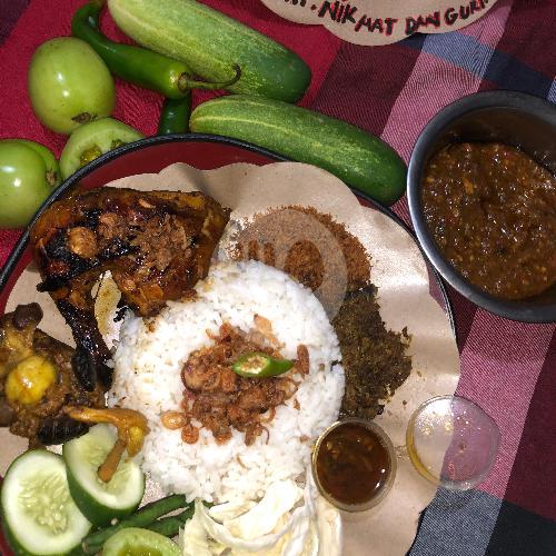 NASI PUTIH + AYAM PENYET BAKAR REMPAH + ATI AMPELA GORENG + SERUNDENG KELAPA + LALAPAN + KERUPUK + SAMBAL IJO BUMBU REMPAH SUPER LEZAT MBOK DARMI