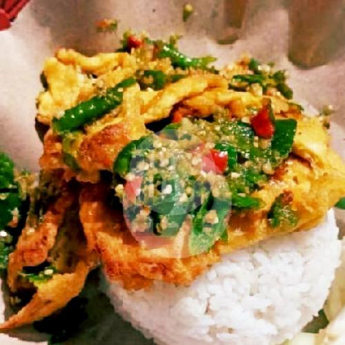 NASI PUTIH + TELOR DADAR BUMBU + SERUNDENG KELAPA + LALAPAN + KERUPUK + SAMBAL IJO BUMBU REMPAH SUPER LEZAT MBOK DARMI