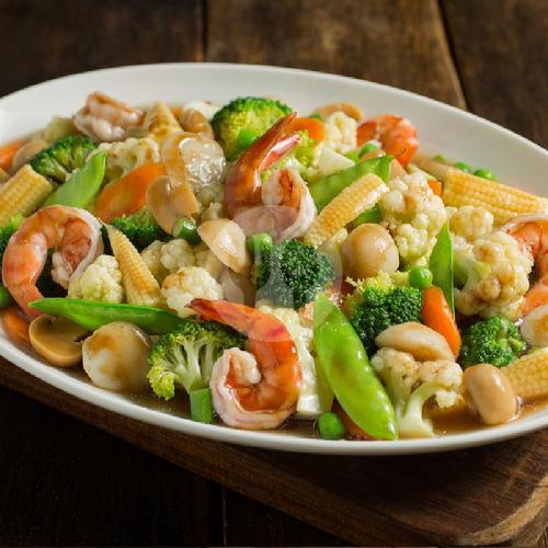 Nasi Goreng dengan Toping udang,cumi, bakso, Telur.