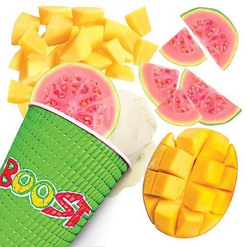 Pink guava, mango, mango nectar, prebiotic vanilla yoghurt & ice