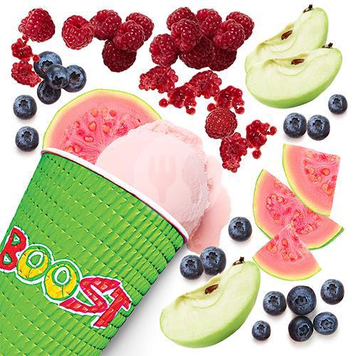 Pink guava, raspberries, blueberries, apple juice, prebiotic strawberry yoghurt & ice