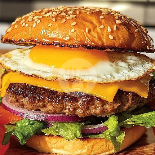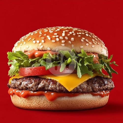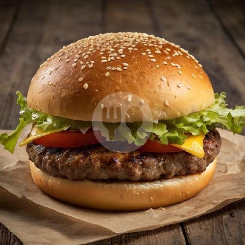 Roti, Daging, selada, bombai, keju Slice, saos. (Bisa request tanpa sayur)