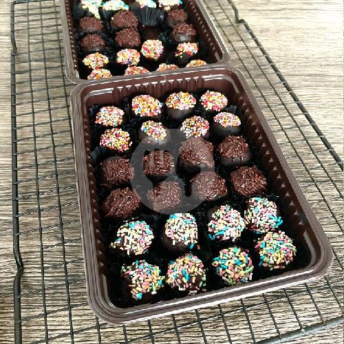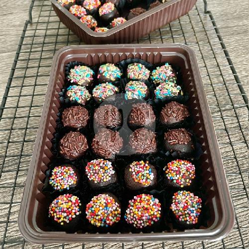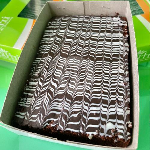 Brownies bakar ukuran 15cm x 10cm. Toping coklat lurik/coklat keju