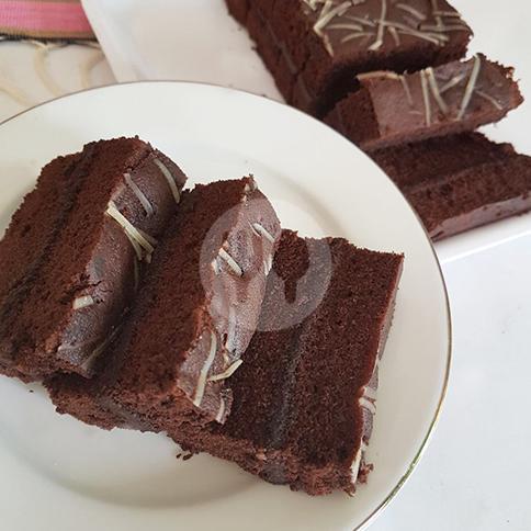 Brownies kukus ukuran 30cm x 10cm. Toping coklat lurik/coklat kacang/coklat keju