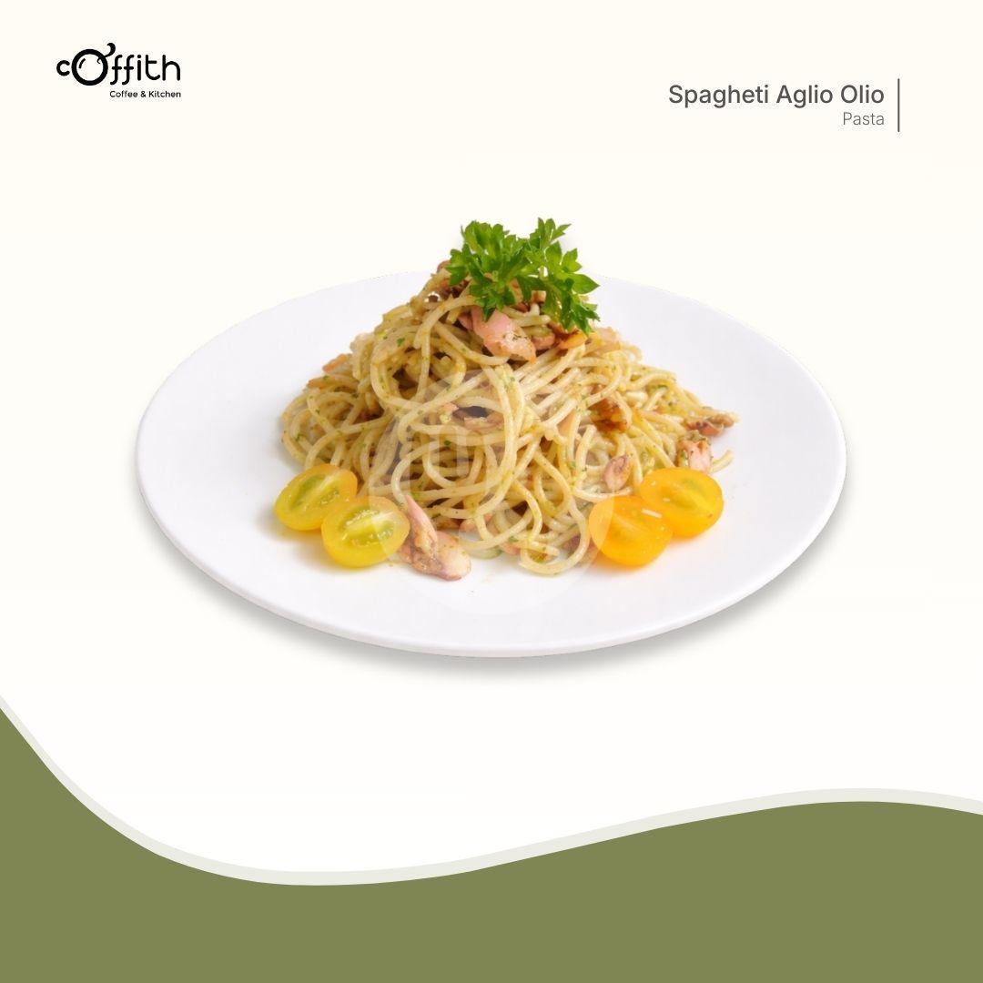 Spaghetti yang ditumis dengan minyak zaitun, bawang putih, cabai, dan herbs segar. Gurih atau pedas? request