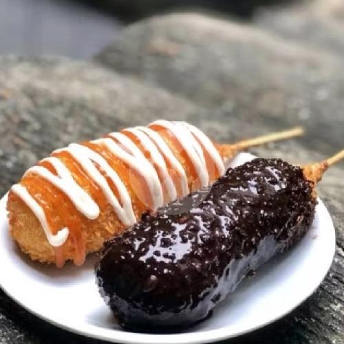 paket berisi 1 corndog mozarella original ukuran sedang dan 1 corndog mozarella coklat