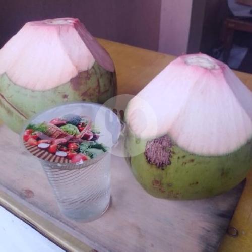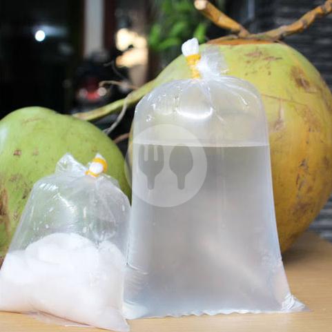 Air + Daging Buah Kelapa Muda Asli Kemasan Plastik. Fresh Dibelah Dadakan. Murni Tanpa Es dan Gula