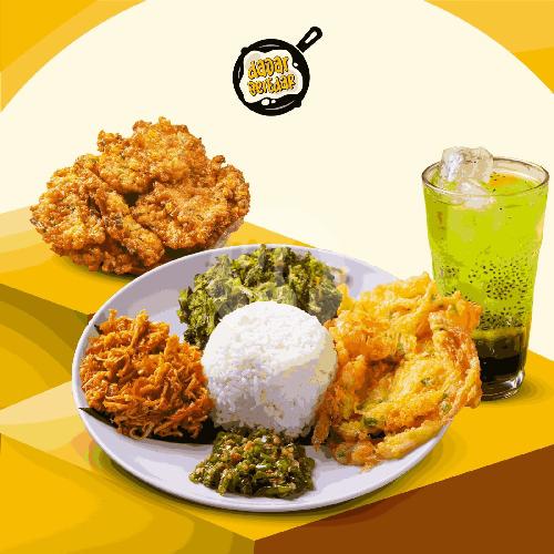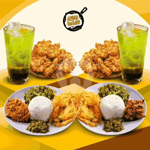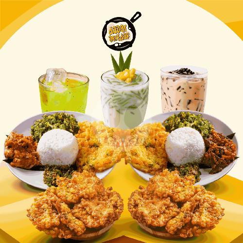 Cobain dadar ayam suwir pedas, dipadu dengan bakwan jagung yang krenyes, gurih, manis. dan gak lupa es java green tea yang nyegerinnn