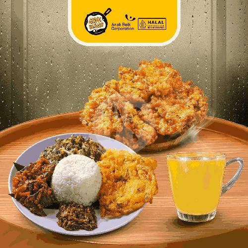 Cobain dadar ayam suwir pedas, dipadu dengan bakwan jagung yang krenyes, gurih, manis. dan gak lupa es java green tea yang nyegerinnn