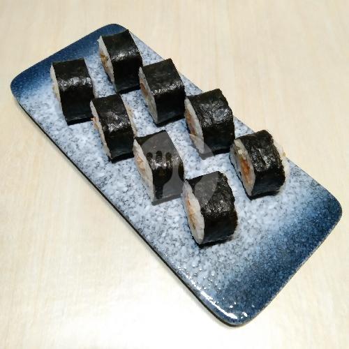 Nasi sushi,nori,ayam,timun dgn toping tepung crispy,tobiko,mayones(8 pcs)
