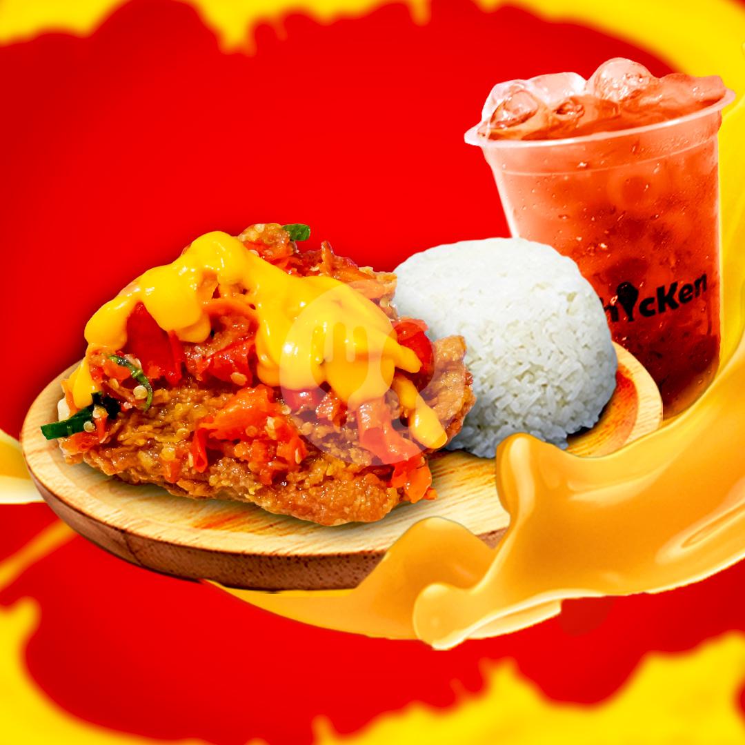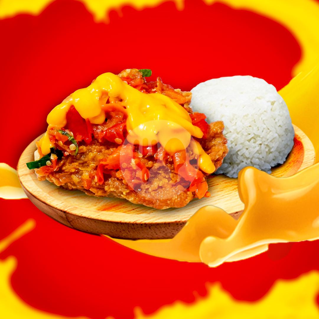 Dada/Paha Atas + Saus Keju + Sambal Geprek + Nasi