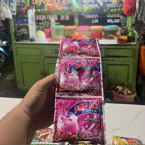 Pop Ice Stwabery Toping Agaragar Merah Dan Cingcau