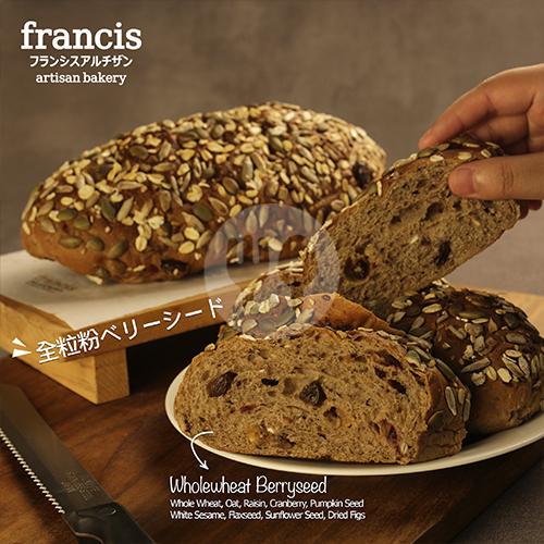 Whole wheat, oat, raisin, cranberry, pumpkin seed, white sesame, flaxseed, sunflower seed, dried figs.