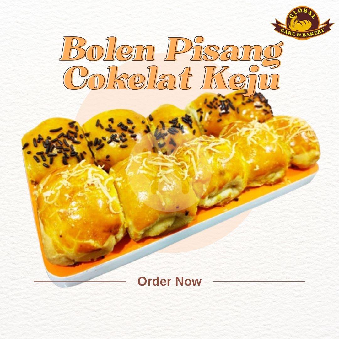 Bolen Pisang Cokelat Keju buatan Global Bakery memiliki cita rasa khas dan merupakan produk best seller. Bolen ini memiliki adonan lembut dan pisang yang manis. Terdiri dari 6 potong yang berisi Cokelat atau Keju perpaduan rasa yang lezat.