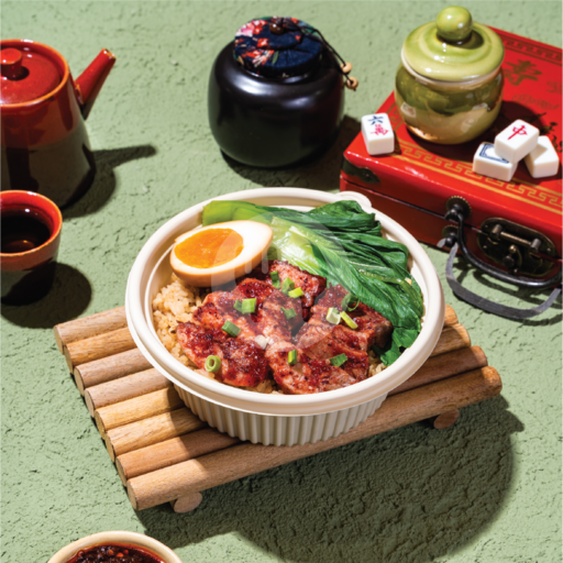 Hainanese rice served with charsiu chicken and beef brisket, soy-marinated egg, bok choy, and pickles.