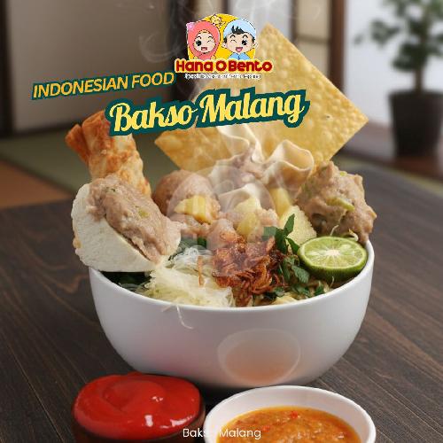 Bakso Malang isian bakso, bakso tahu coklat, bakso tahu putih, pangsit bakso, pangsit bakso roll, pangsit goreng, cincang, mie kuning, soun, tauge, sayur cesim, seledri, kuah sueger, saus, sambal, kecap, bawang goreng, jeruk limo