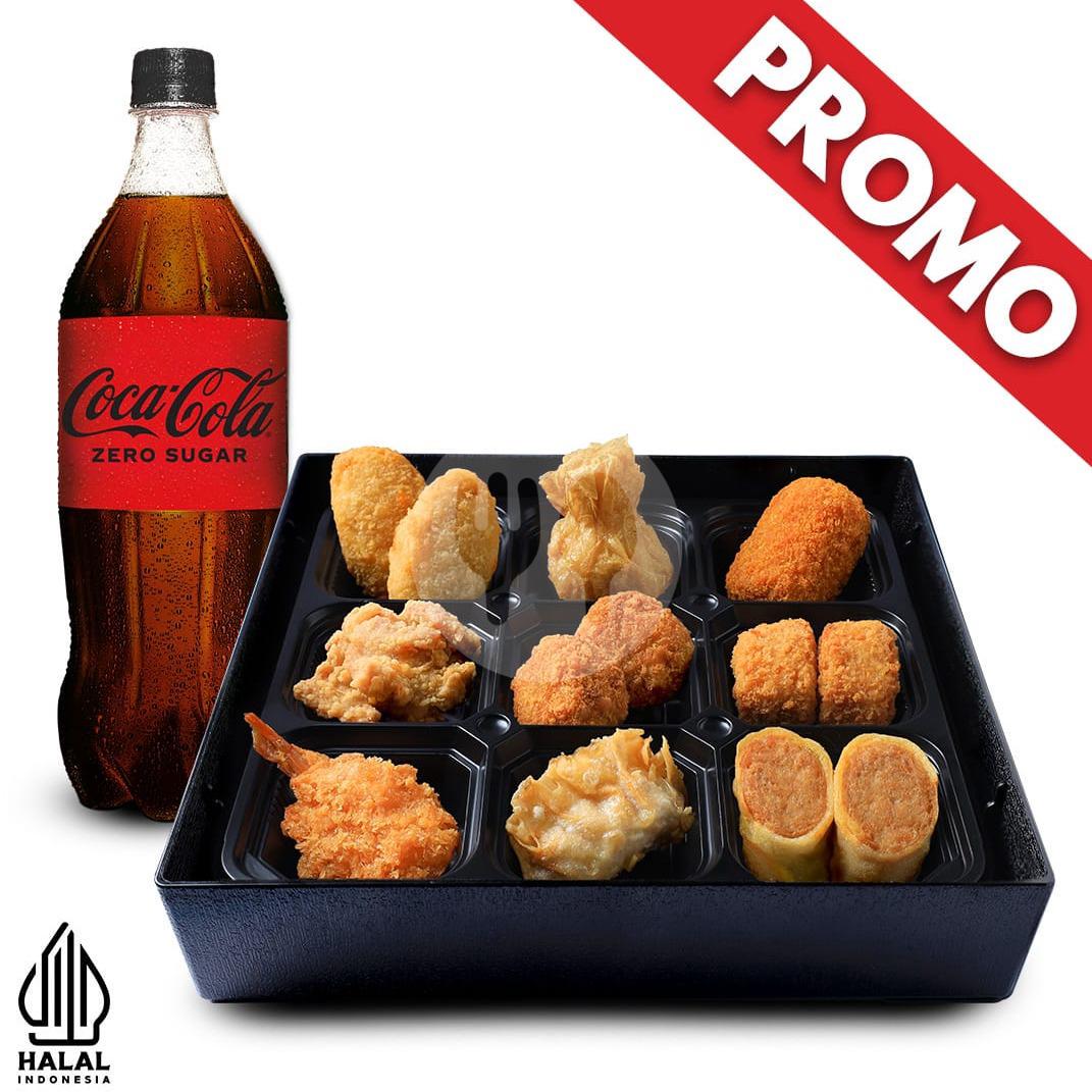 Menu Favorite HokBen dengan cita rasa gurih yang dikemas sebagai Platter dalam 9 sekat kompartemen + Free Coca Cola Zero 1 Liter