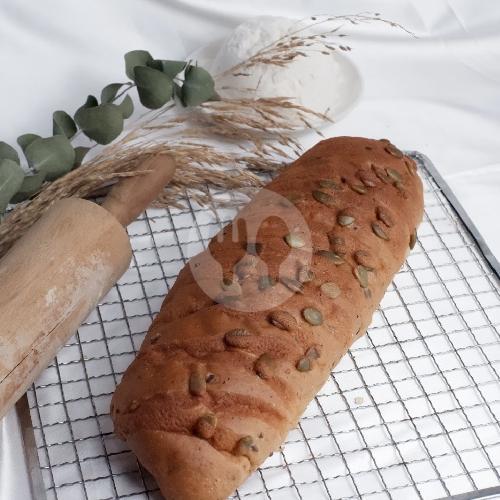 Roti gandum isi kismis dan kacang walnut dengan topping kulit walnut