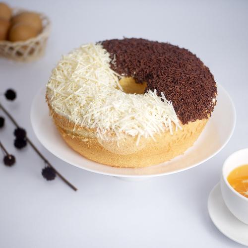 Bolu sifon vanilla dengan topping coklat meses dan parutan keju
