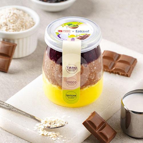Caramel pudding + chocolate oat meal + purple rice