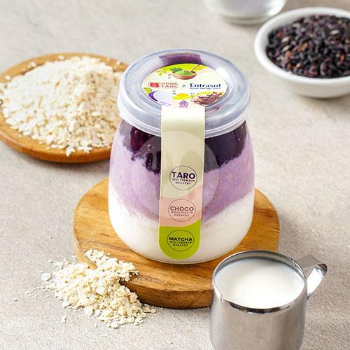 Coconut pudding + taro oat meal + purple rice
