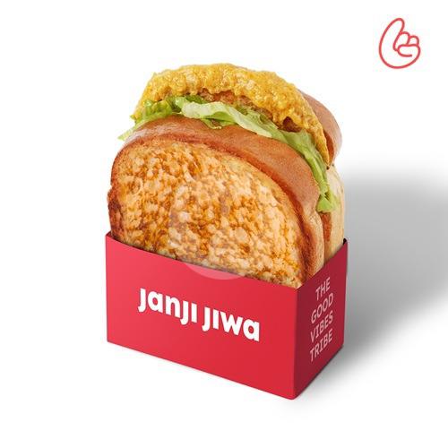 Toasted bread with crispy, juicy chicken, layered with creamy salted egg sauce for a rich and savory bite.