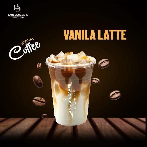 Kopi latte vanilla lembut, penuh aroma manis dan creamy.
