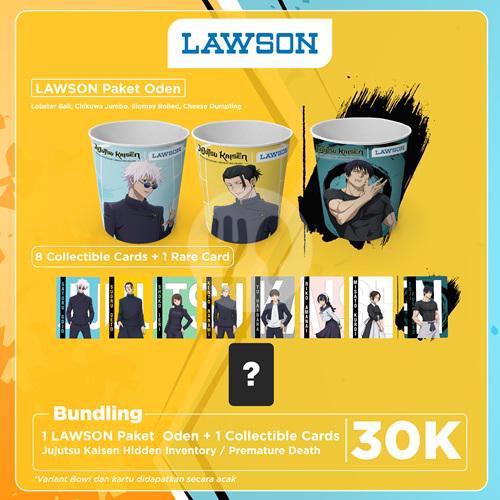 1 Paket oden dengan bowl Jujutsu Kaisen (random design) berisi lobster ball, chikuwa jumbo, siomay rolled, cheese dumpling, plus 1 collectible card (blind pack)