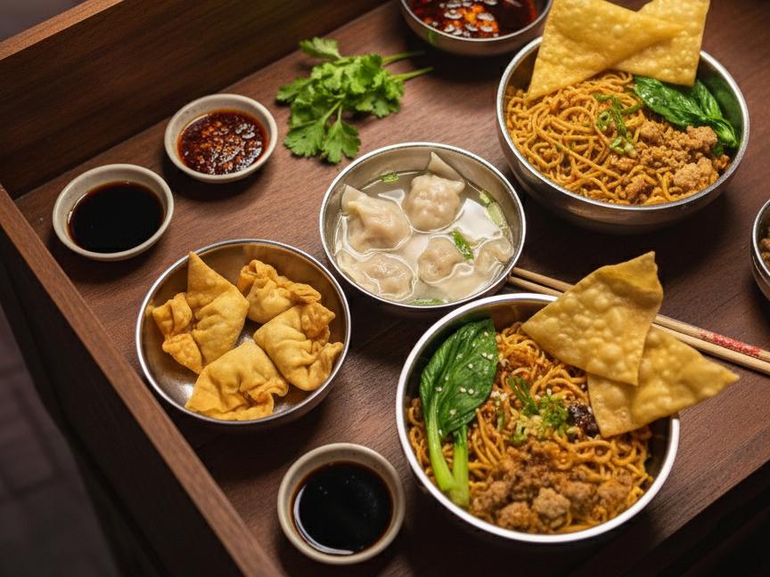 Bakmi dengan saus pasta wijen dan pasta cabai serta chilli oil