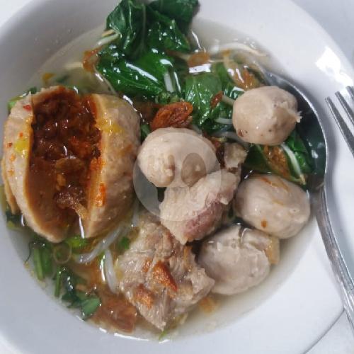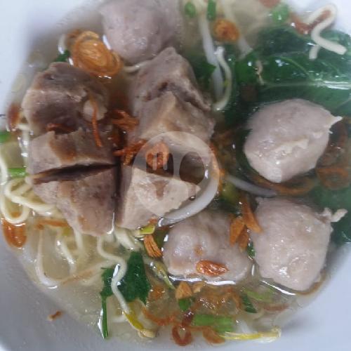 1 Bakso Besar Dengan Isi Daging Cincang + 4 Bakso Kecil + Mie Kuning dan Putih + Sayuran
