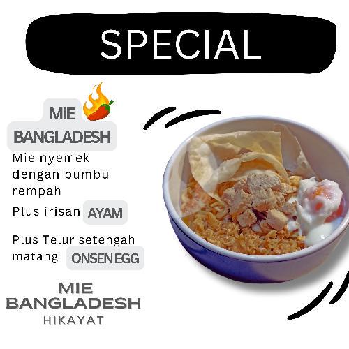 Mie nyemek bumbu rempah, porsi normal, topping: kerupuk pangsit, irisan ayam dan telur ayam kampung omega setengah matang