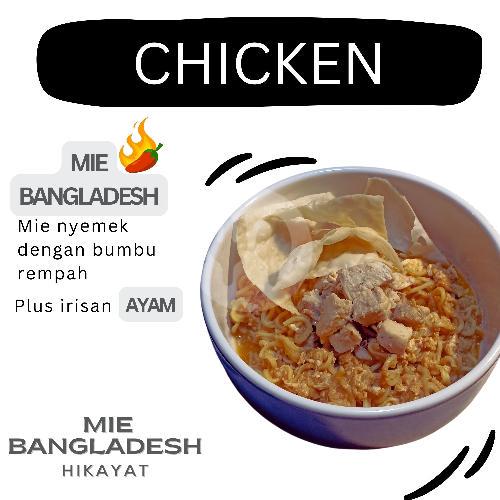 Mie nyemek bumbu rempah, porsi normal, topping: kerupuk pangsit dan irisan ayam